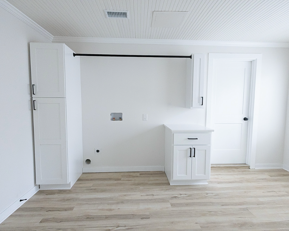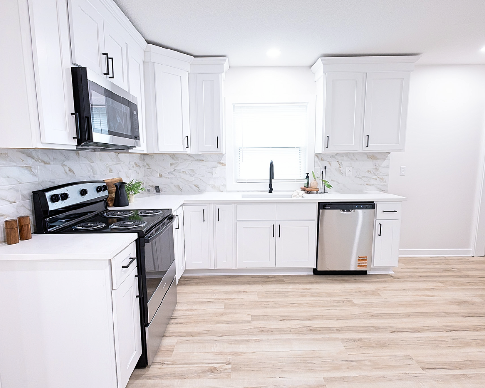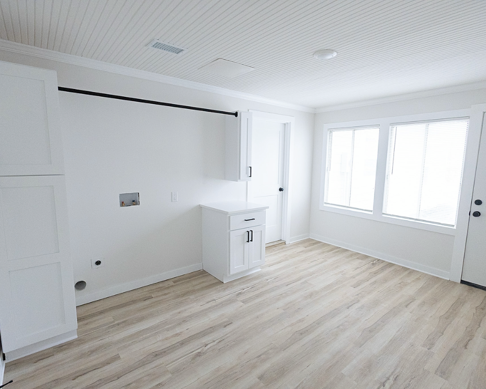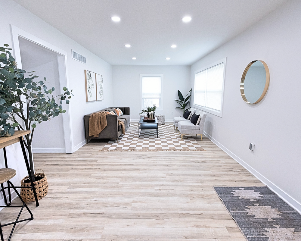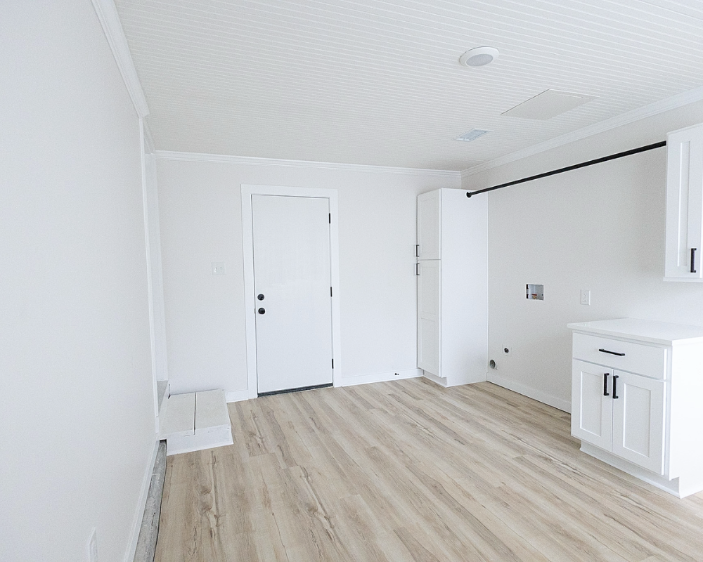 This full home renovation transformed the interior into a bright, cohesive, and modern living space. Light wood flooring flows throughout the home, creating continuity while enhancing the natural light in every room. The kitchen was redesigned with clean white cabinetry, sleek hardware, and a marble-inspired backsplash that brings a fresh and timeless feel to the space. Open living areas now feel more spacious and welcoming, with a layout that allows each space to flow naturally into the next. The bedrooms were updated with simple, calming finishes that create a comfortable and restful atmosphere. Altogether, the renovation gives the entire home a clean, contemporary look that feels both inviting and functional for everyday living