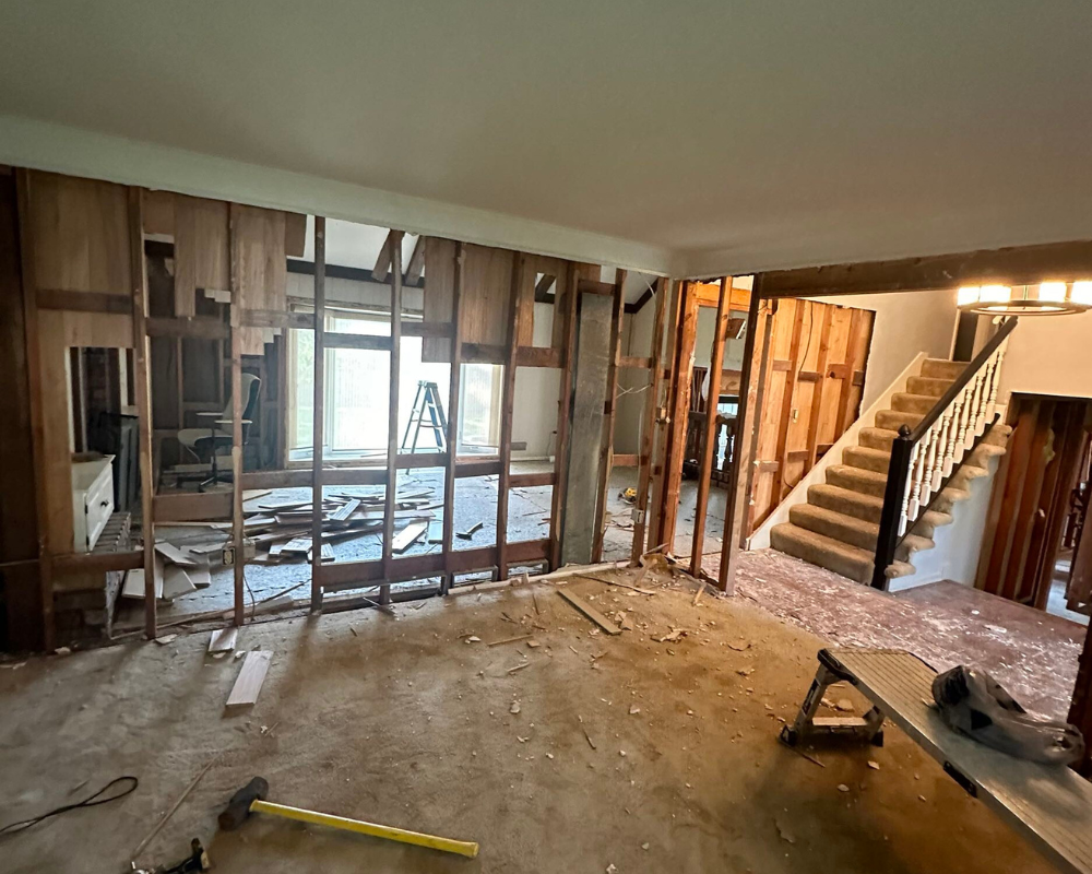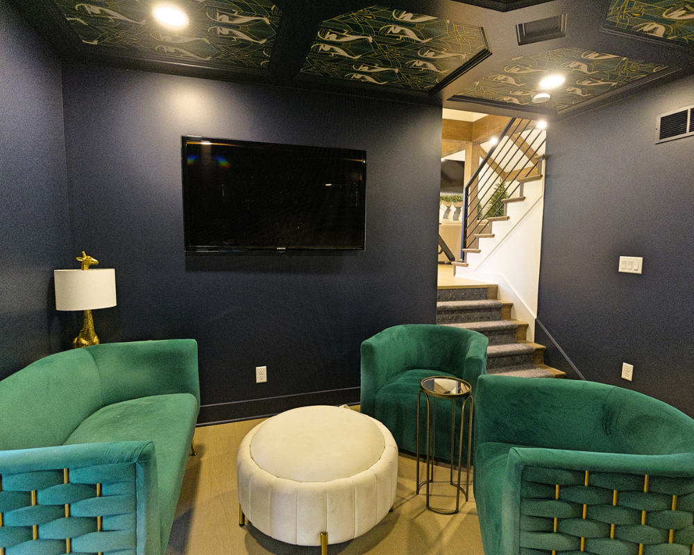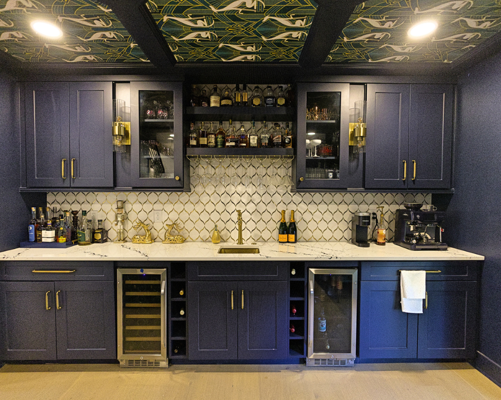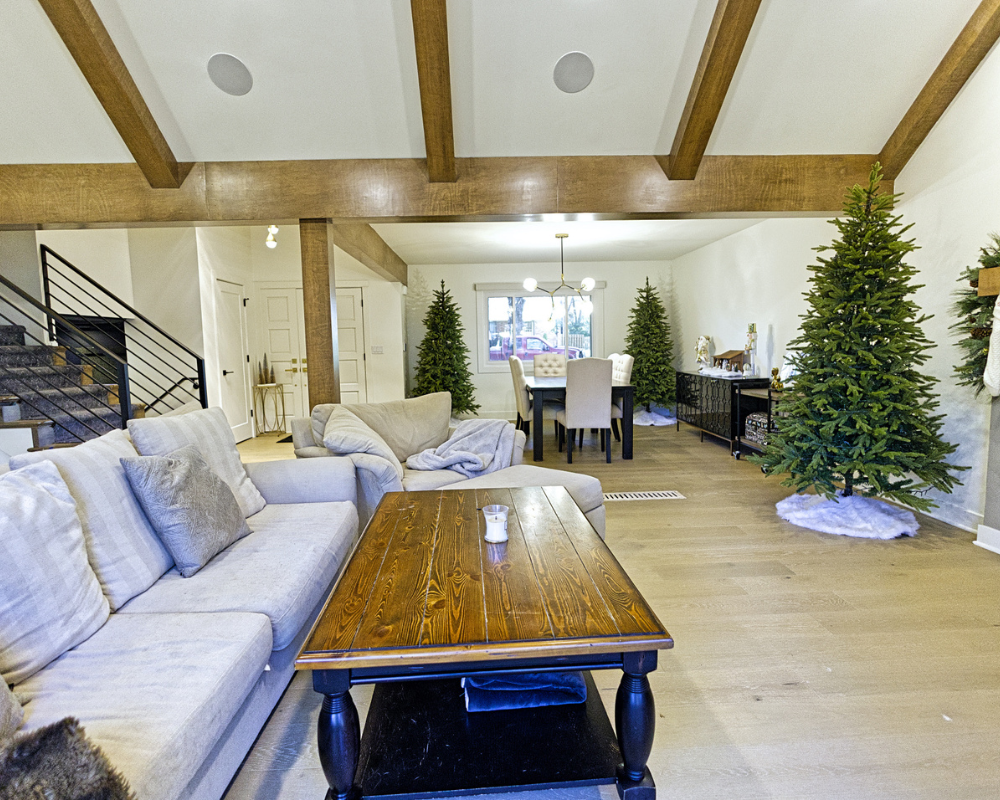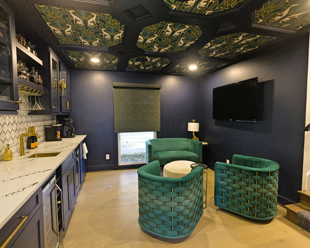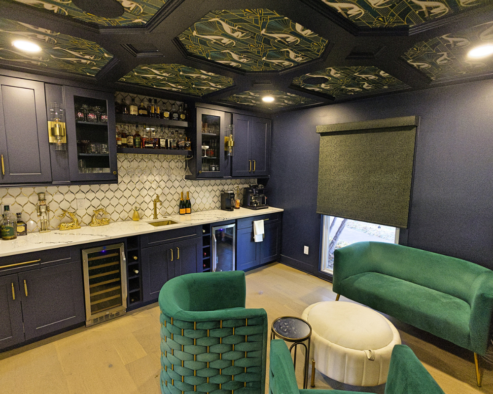 This full home renovation completely transformed a dated, compartmentalized layout into a bright, open, and beautifully refined living space. The new vaulted living room showcases warm wood beams, a sleek fireplace feature wall, and expansive windows that fill the home with natural light. The kitchen was reimagined with custom cabinetry, high-end appliances, and a clean, timeless palette that brings both elegance and functionality. Every detail—from the bold wallpapered powder room to the luxurious bar lounge and the spa-inspired primary bathroom—was thoughtfully designed to elevate the homeowners’ everyday experience. With cohesive finishes, modern lighting, and intentionally curated spaces, the home now feels contemporary, inviting, and truly tailored to the family’s lifestyle.