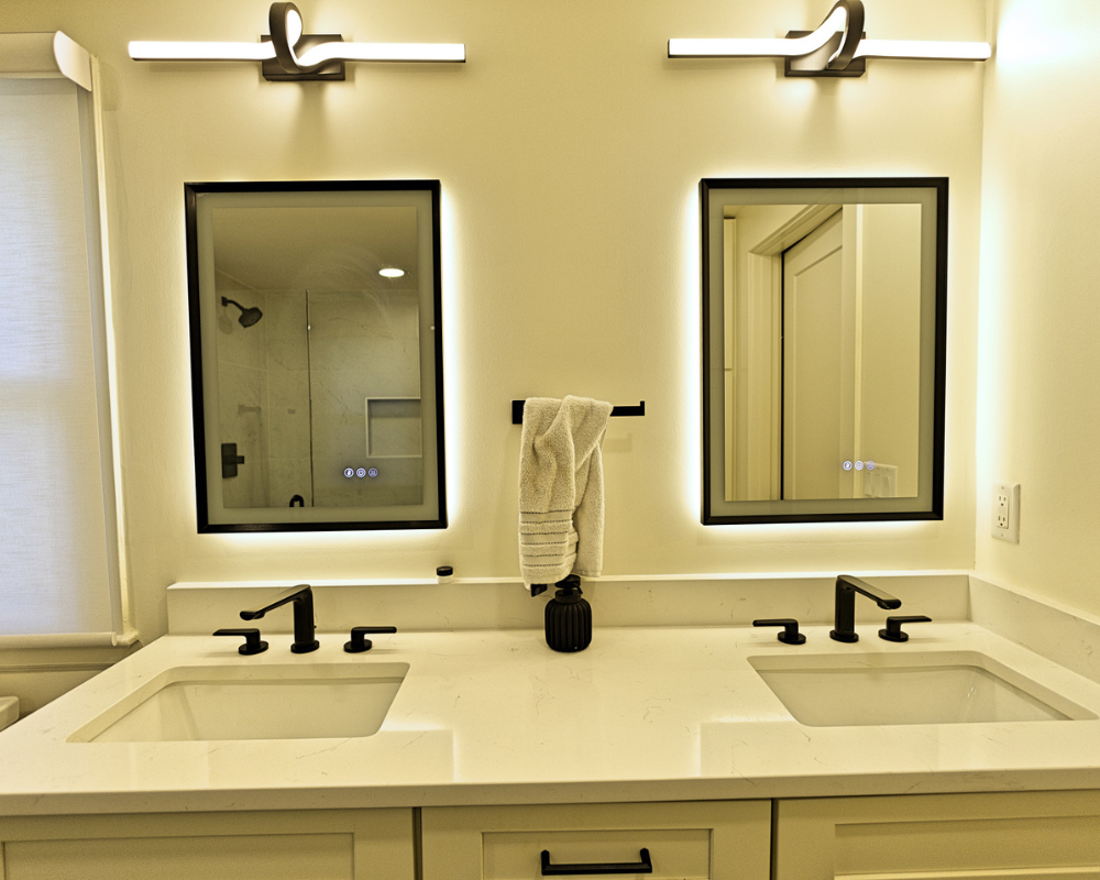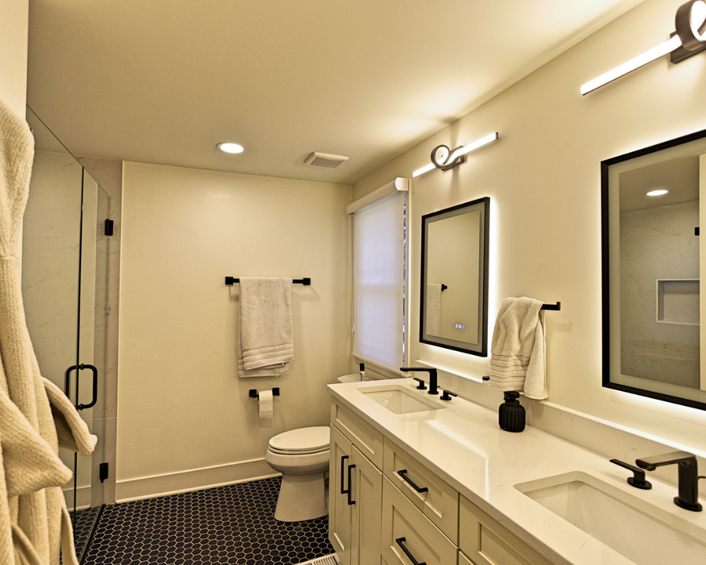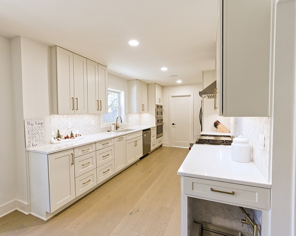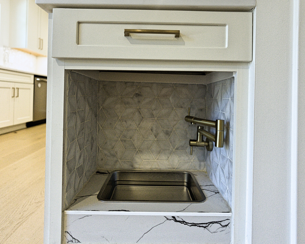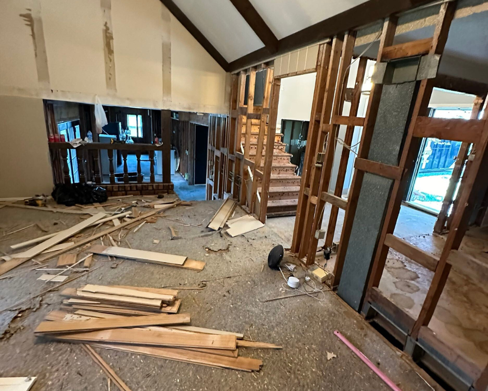 This full home renovation completely transformed a dated, compartmentalized layout into a bright, open, and beautifully refined living space. The new vaulted living room showcases warm wood beams, a sleek fireplace feature wall, and expansive windows that fill the home with natural light. The kitchen was reimagined with custom cabinetry, high-end appliances, and a clean, timeless palette that brings both elegance and functionality. Every detail—from the bold wallpapered powder room to the luxurious bar lounge and the spa-inspired primary bathroom—was thoughtfully designed to elevate the homeowners’ everyday experience. With cohesive finishes, modern lighting, and intentionally curated spaces, the home now feels contemporary, inviting, and truly tailored to the family’s lifestyle.