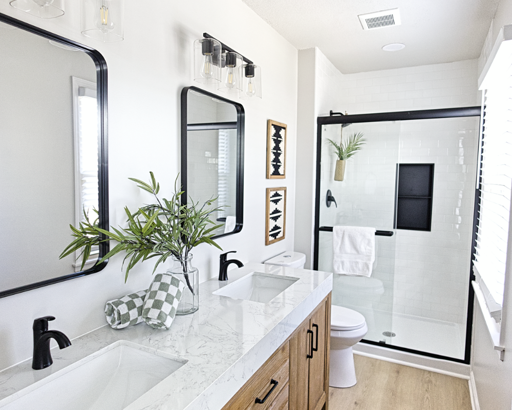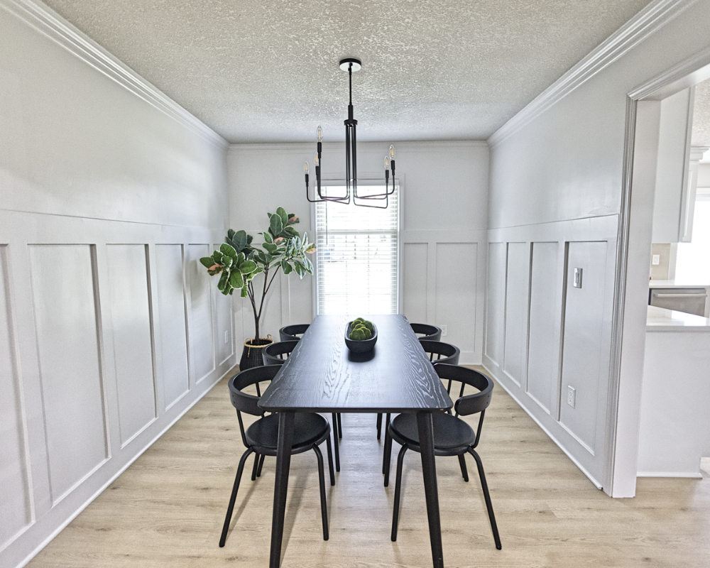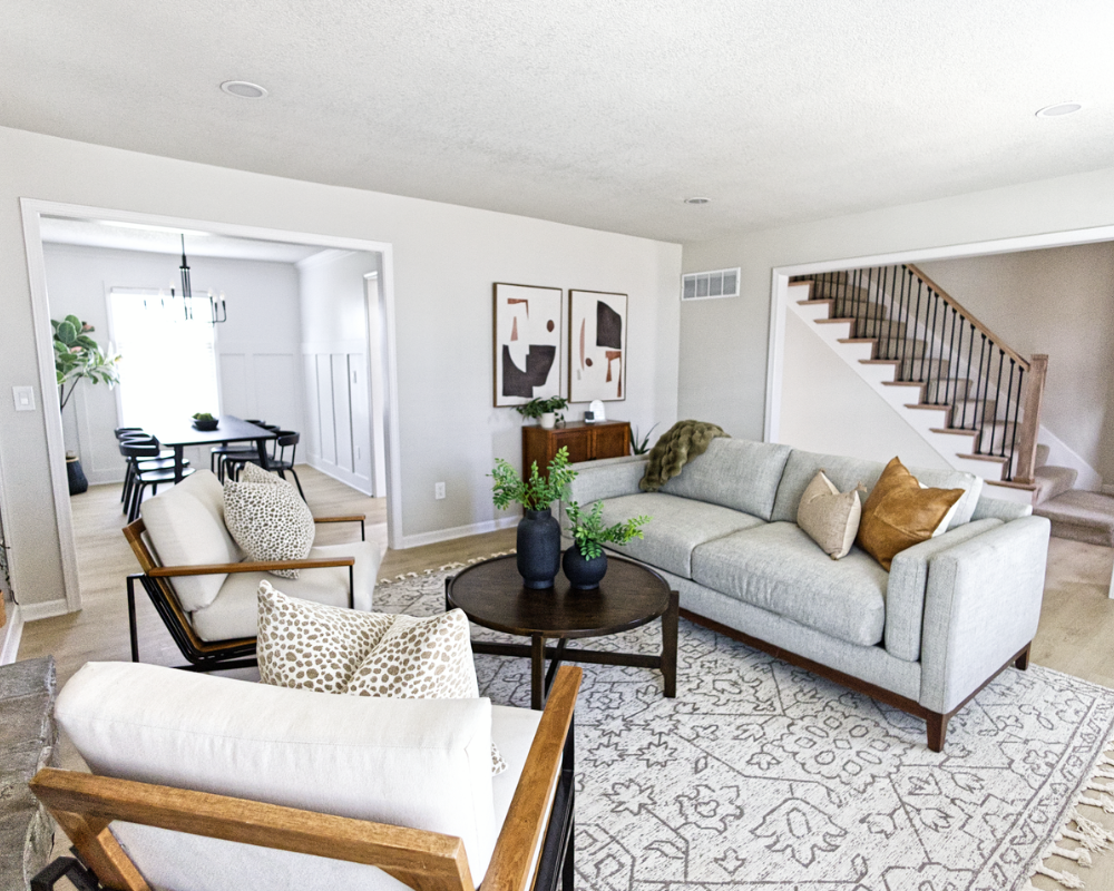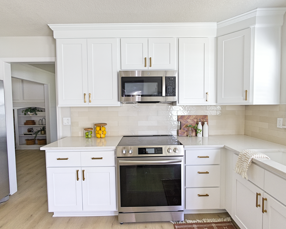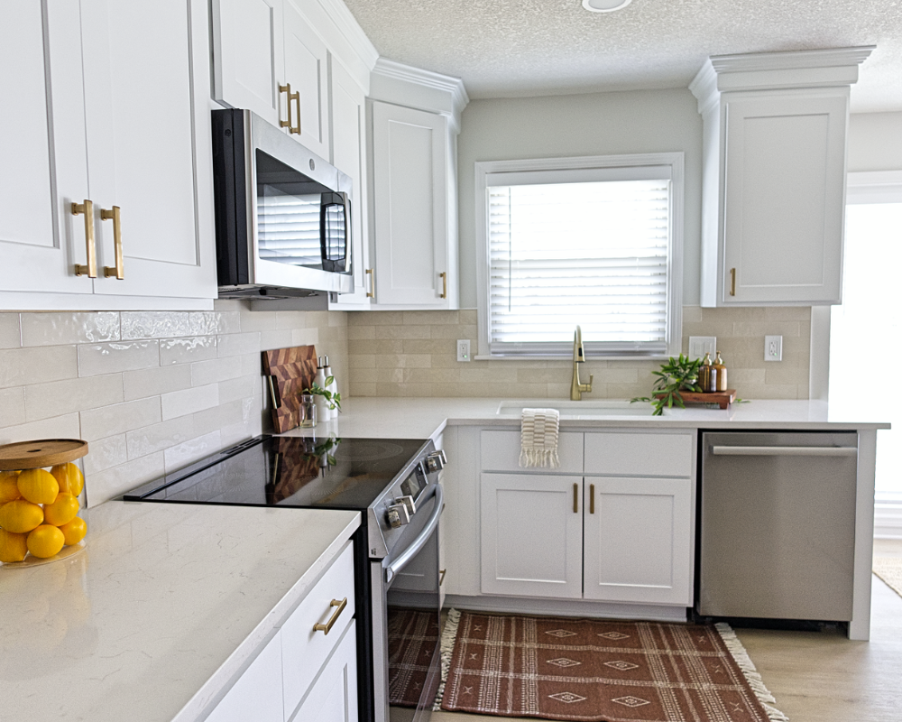 This full home renovation transformed the interior into a bright, cohesive, and modern living environment designed for both comfort and functionality. The updated kitchen features clean white cabinetry, warm brass hardware, and a soft neutral backsplash that brings a timeless and elegant feel to the space. Light wood flooring runs throughout the home, creating continuity while enhancing the natural light across the living areas and bedrooms. The bathrooms were refreshed with modern vanities, clean tile work, and updated fixtures that add both style and practicality. Open and welcoming living spaces now flow naturally into the dining and kitchen areas, making the home feel more spacious and connected. Altogether, the renovation gives the entire home a fresh, contemporary look that feels warm, polished, and ready for everyday living.