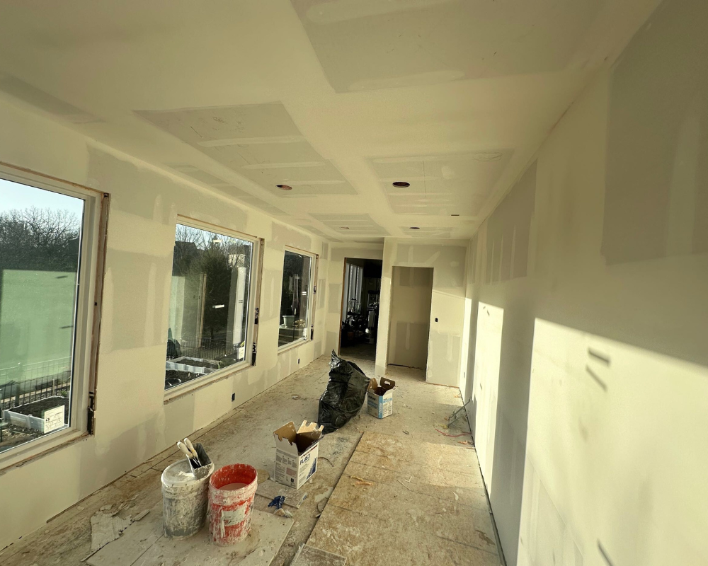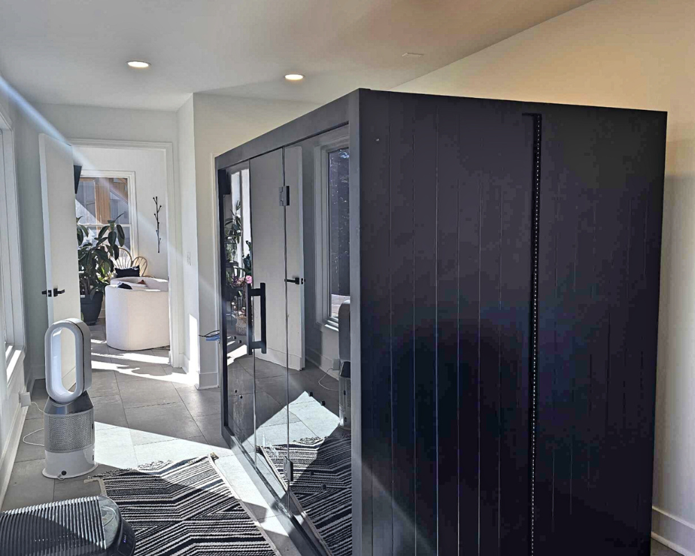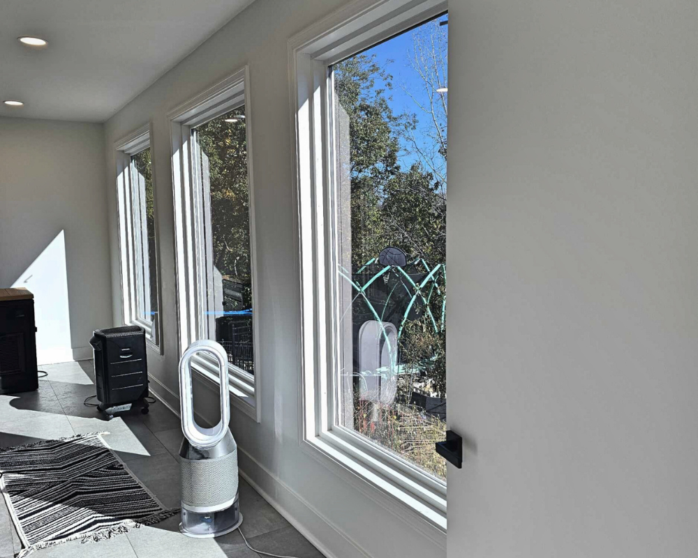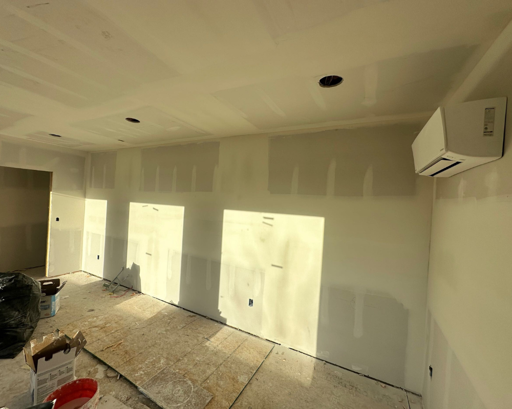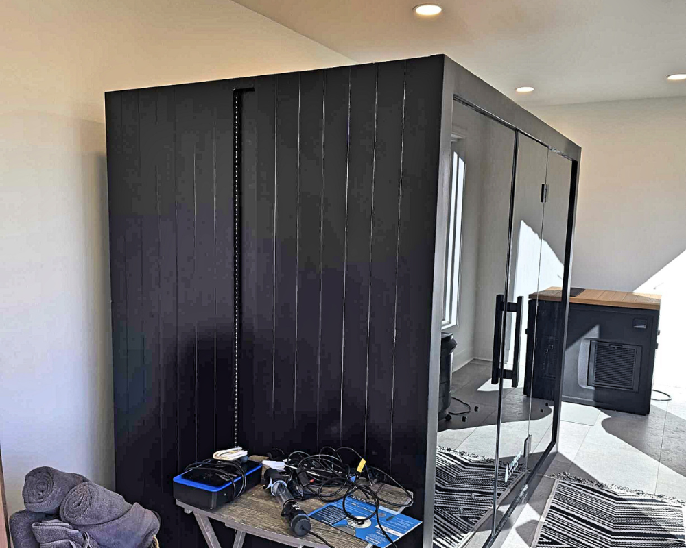 This room addition transformed an unfinished exterior space into a bright, functional retreat designed for daily wellness and comfort. What began as a simple exterior wall and bare framing evolved into a fully insulated, drywall-finished extension with expansive windows that fill the room with natural light. Large-format floor tiles create a sleek and durable foundation, while recessed lighting and clean white walls give the space a modern, airy feel. The finished room now accommodates a high-end sauna and a cold plunge setup, turning the area into a personalized home spa that blends relaxation with purpose. With thoughtful details and a seamless connection to the existing home, this addition elevates the property with a space that is both peaceful and beautifully crafted.