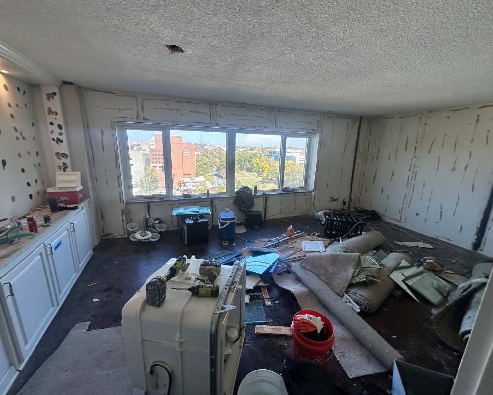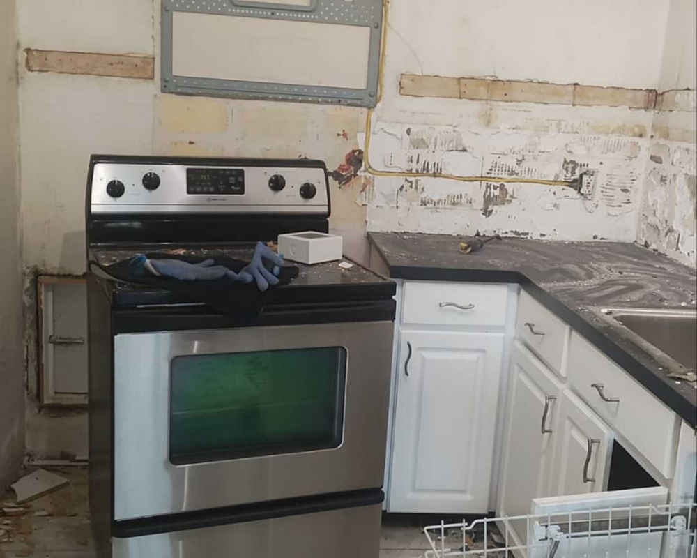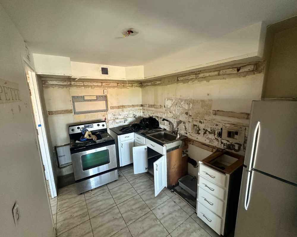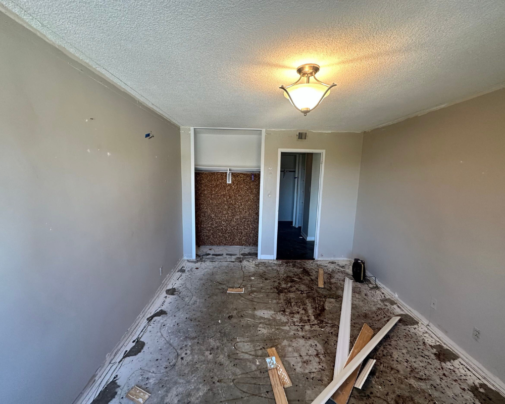 This full home renovation brought new life to a space that was once completely abandoned and deteriorated. The original condition showed stripped walls, exposed flooring, and a kitchen and bathroom left in disrepair. Our team transformed it from top to bottom: the kitchen now shines with bright white cabinetry, stainless steel appliances, and a beautiful center island. The open-concept living area features elegant light hardwood floors, while the bedrooms were refreshed with new carpet and modern lighting. The bathroom was rebuilt with clean tile work, a sleek walk-in shower, and a stylish vanity with a designer backsplash. What was once unlivable is now a beautiful, fully restored home—ready for a fresh start.